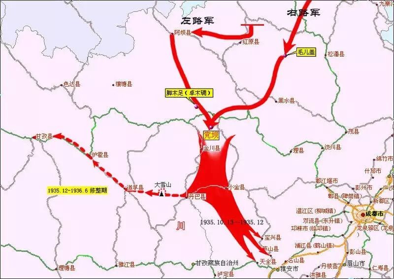 ▲ 红四方面军南下路线图