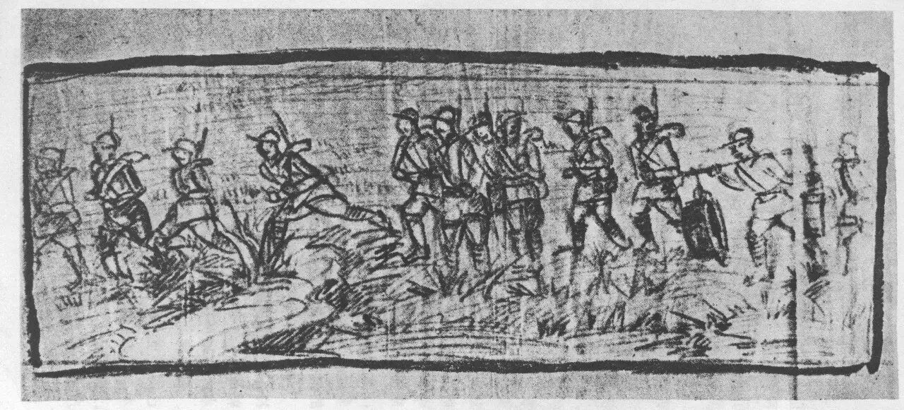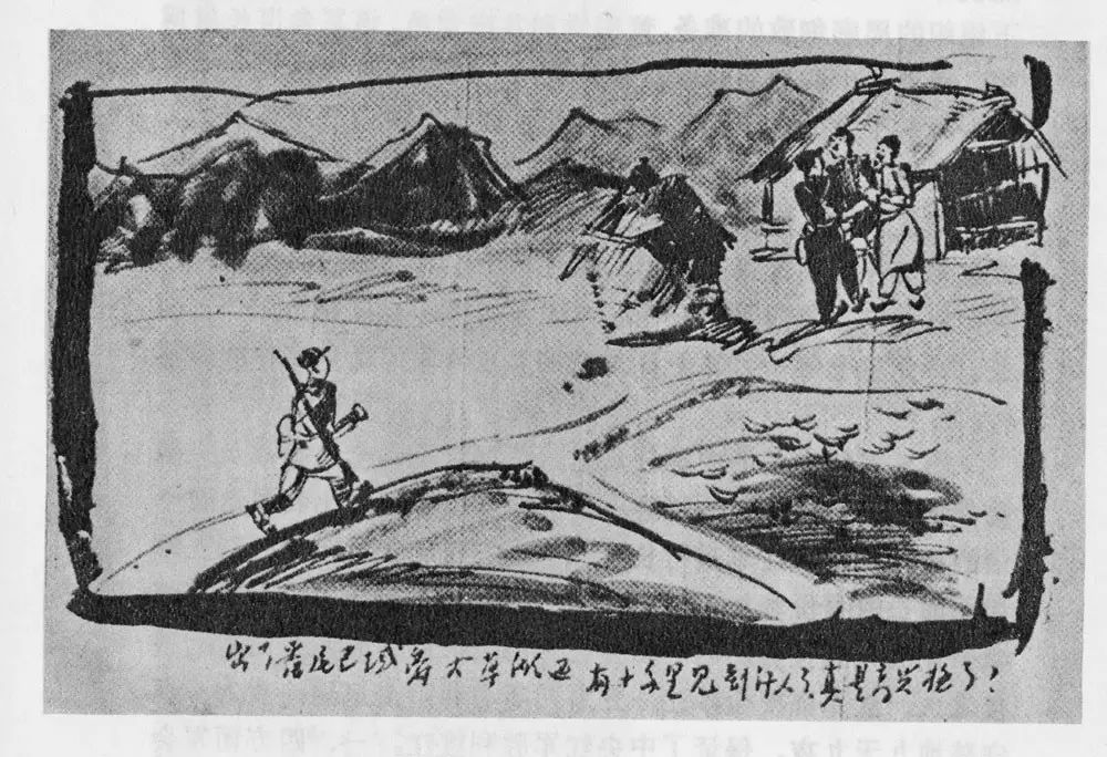 ▲ 草地行军(黄镇画)