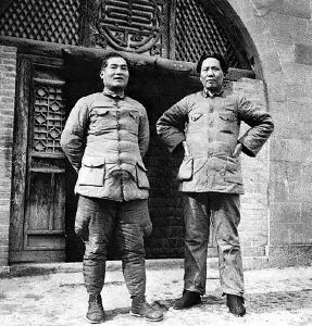▲ 张国焘、毛泽东在陕北